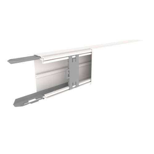 Für die Kabelführung und -verteilung mit außenliegender Abdeckung. Für den Einsatz im Außenbereich geeignet. Flexible Kammeraufteilung für die Führung und den Schutz von elektrischen Kabeln und Telekommunikationsleitungen. Bodenlochung alle 250mm. Es werden 1 Klammer und 2 vormontierte Verbinder je 0,5m Kanal mitgeliefert. Lieferlänge: 3m. Mechanische Sicherheit: Schutzgrad gegen äußere mechanische Beanspruchung Schlagfestigkeit IK08. Elektrische Sicherheit: Isolierendes Material; IP4X bei Montagen an der Wand. Verhalten gegenüber Feuer: Glühdrahtversuch bei 960°C - nicht flammenausbreitend. Die Abdeckung wird durch Aufdruck montiert. Ein Nachschieben der Abdeckung ist nicht notwendig. Die Klammer hält die Kabel zurück und sorgt für einen sicheren Halt der Abdeckung auch unter anspruchsvollsten Bedingungen. Die Verbinder ermöglichen eine perfekte Ausrichtung und somit eine einfache Montage und Befestigung der Kanalböden auf den Untergrund. Kanal und Formteile sind lackierbar. Bewegbare Trennwand mit frontaler Montage. Farbe: reinweiß