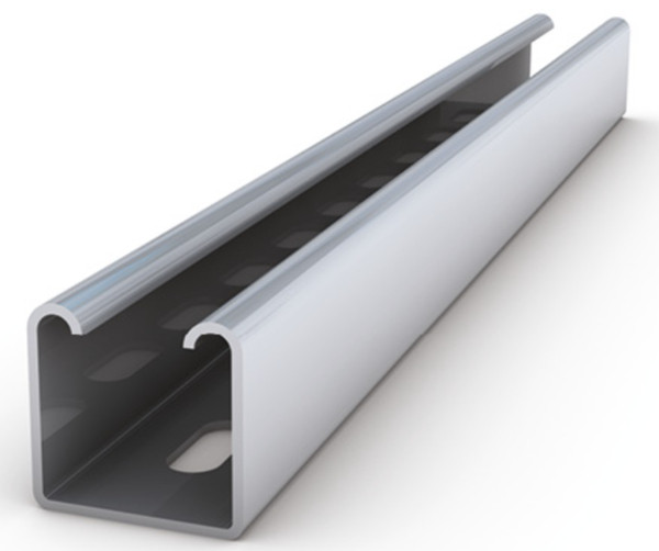 Der Intelok-Kanal ist an den Rücklaufflanschen geriffelt, um die Rutschfestigkeit deutlich zu erhöhen. Oberfläche verzinkt gemäß BS EN10346, Abmessung LxBxH; 3000 x 41 x 41 mm, 1 St = 3M