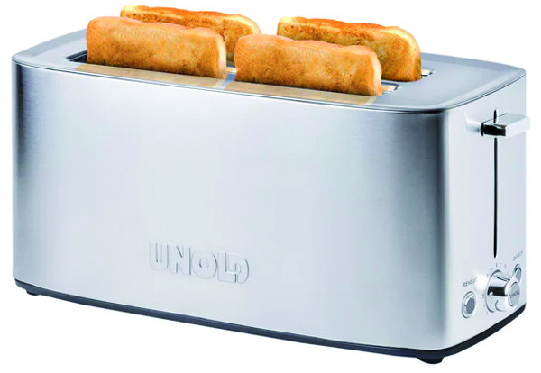 stufenloser Drehregler zur Einstellung des Bräunungsgrads, XXL-Röstkammern, abnehmbarer Brötchenaufsatz, Tasten für Auftauen, Aufwärmen und Stoppen, Krümelschublade, wärmeisoliertes Gehäuse aus Edelstahl