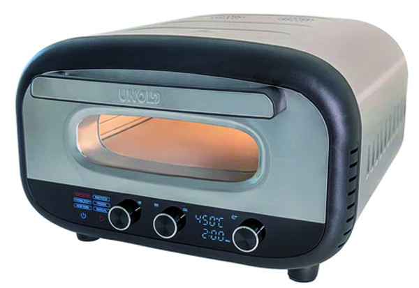 Pizza wie aus dem Steinbackofen mit bis zu 450°C für die perfekte Pizza in nur ca. 2 Min., auch für z.b. Flammkuchen und Fladenbrot geeignet, getrennt einstellbare Ober- und Unterhitze zwischen 80-450 °C, 6 Programme (Napoli, Dünn & Knusprig, New York-Stlye, Pfannenpizza, Tiefkühlpizza, Eigenprogramm), inkl. hochwertigem, entnehmbarem Pizzastein (32 x 32 cm) aus Cordierit, doppelverglaste Tür, Backraum-Innenbeleuchtung, Cool-Touch-Griff, Timereinstellung zwischen 1-60 Minuten, Drehregler und Touch-Control-Display