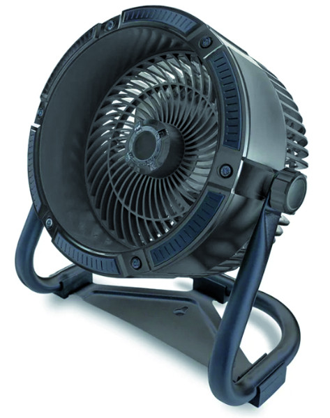 akkubetriebener Ventilator für drinnen und draußen, auch zur Wandmontage geeignet, 4-stufige Geschwindigkeitsregelung per Tastendruck, zuschaltbares, dimmbares Ambiente-Licht, Akkubetrieb je nach Stufe ca. 3 - 12 Stunden, Akkuladezeit ca. 3-4 Std., inklusive USB-C-Ladekabel, USB-A-Adapter