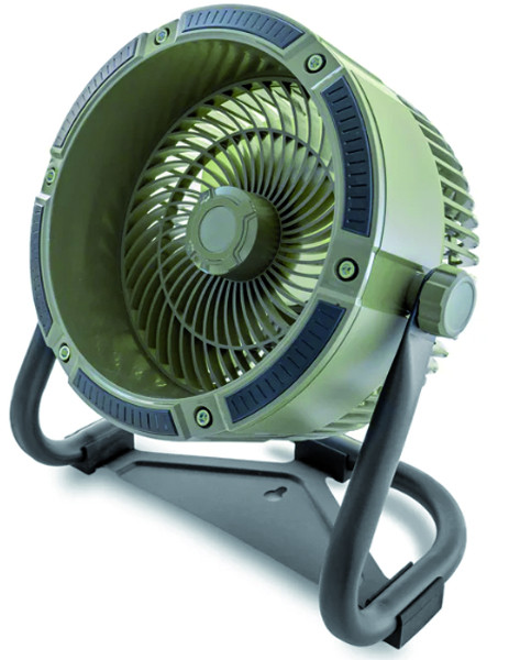 akkubetriebener Ventilator für drinnen und draußen, auch zur Wandmontage geeignet, 4-stufige Geschwindigkeitsregelung per Tastendruck, zuschaltbares, dimmbares Ambiente-Licht, Akkubetrieb je nach Stufe ca. 3 - 12 Stunden, Akkuladezeit ca. 3-4 Std., inklusive USB-C-Ladekabel, USB-A-Adapter