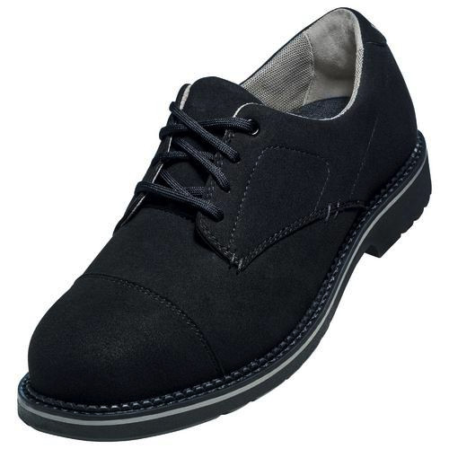 Ob im Büro oder in der Werkhalle - die lässigen uvex 1 business Sicherheitshalbschuhe lassen sich sowohl zur Chino, zum Anzug als auch zur Arbeitshose stilvoll kombinieren. Nach außen hin erscheinen die uvex 1 business Schnürschuhe aus dunkelblauem Mikrovelours im klassischen Look. Die hellgrauen Schnürsenkel, die raffinierten Ziernähte und die markante Sohlennaht verleihen den Schnürschuhen zudem moderne Details.