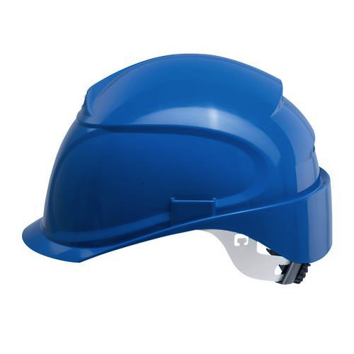 Sicherer Sitz dank 6-Punkt-Textilband, ein Drehrad zur Größenverstellung, Slots für die Aufnahme von Visieren und Kapseln – auf diesen schnörkellosen Arbeitsschutzhelm ist in jeder Situation Verlass.