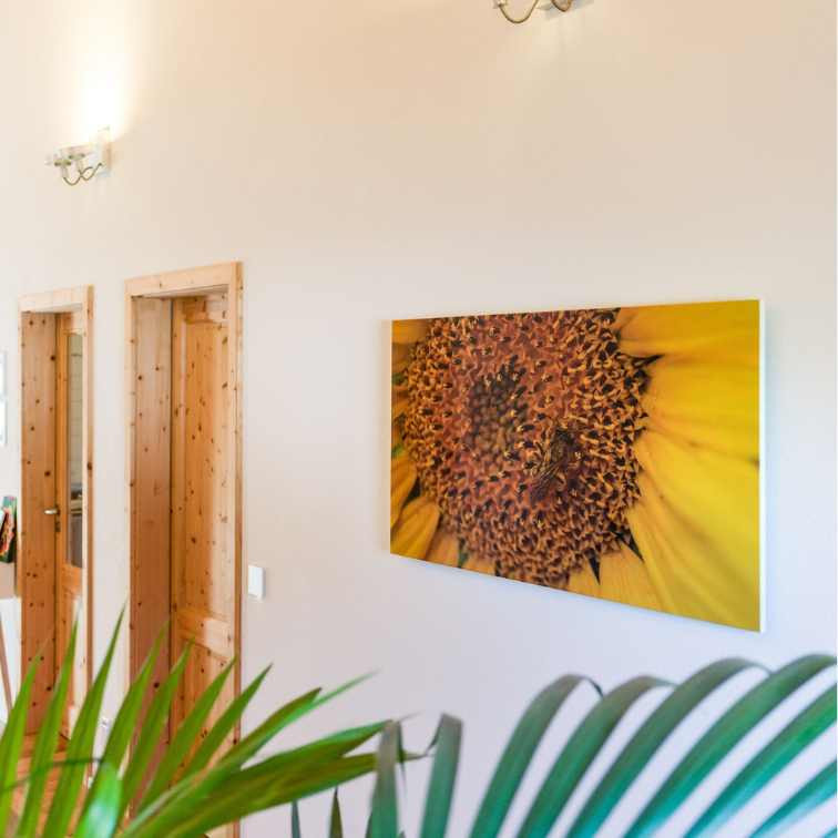 Als Infrarotheizung wird das Wand-Bildheizelement ortsfest zur Beheizung geschlossener Räume im Wohn- und Arbeitsumfeld eingesetzt. Die Wand-Infrarotheizung der Baureihe VL-A_B ist für die Aufputz-Montage an der Wand geeignet. Dabei kann das Heizelement sowohl im Quer- als auch im Hochformat montiert werden.