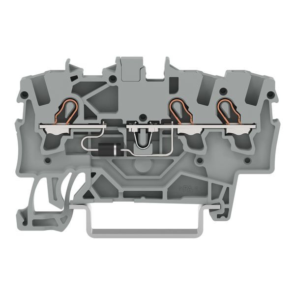 Bauelementklemme; 3 Leiter; mit Diode 1N4007; Anode links; für Tragschiene 35 x 15 und 35 x 7,5; 1,5 mm²; Push-in CAGE CLAMP®; 1,50 mm²; grau