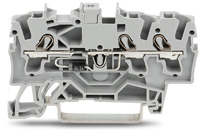 Bauelementklemme; 3 Leiter; mit Diode 1N4007; Anode rechts; für Tragschiene 35 x 15 und 35 x 7,5; 2,5 mm²; Push-in CAGE CLAMP®; grau
