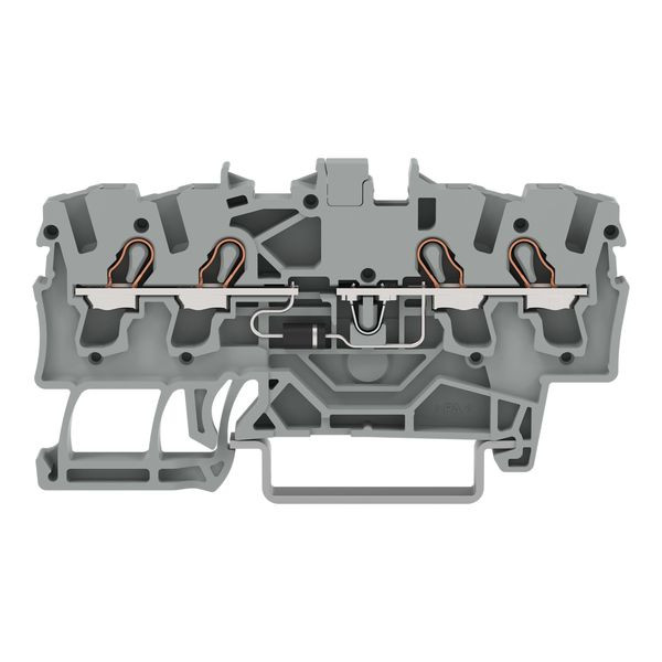 Bauelementklemme; 4 Leiter; mit Diode 1N4007; Anode links; für Tragschiene 35 x 15 und 35 x 7,5; 2,5 mm²; Push-in CAGE CLAMP®; grau