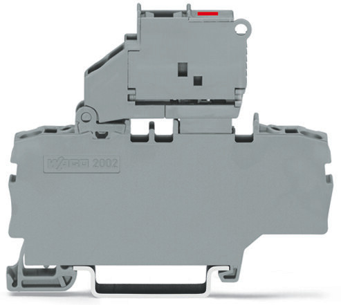 2-Leiter-Sicherungsklemme; mit schwenkbarem Sicherungshalter; mit zusätzlicher Brückung; für G-Sicherungseinsatz 5 x 20 mm; mit Defektanzeige durch LED; 12 - 30 V; für Tragschiene 35 x 15 und 35 x 7,5; 2,5 mm²; Push-in CAGE CLAMP®; 2,50 mm²; grau