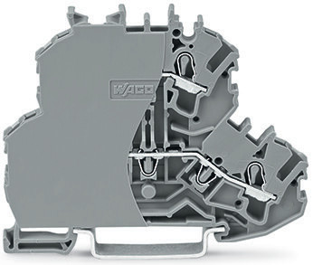 Doppelstockklemme; Durchgangs-/Durchgangsklemme; mit Abschlussplatte; N/L; ohne Beschriftungsträger; Leitereinführung EG, blau bedruckt; für Tragschiene 35 x 15 und 35 x 7,5; 2,5 mm²; Push-in CAGE CLAMP®; 2,50 mm²; grau