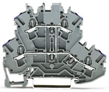 4-Leiter-Durchgangsklemme, intern gebrückt, Leitereinführung violett bedruckt Doppelstockklemme; 4-Leiter-Durchgangsklemme; L; ohne Beschriftungsträger; für Anwendungen Ex e II geeignet; intern gebrückt; Leitereinführung violett bedruckt; für Tragschiene 35 x 15 und 35 x 7,5; 2,5 mm²; Push-in CAGE CLAMP®; 2,50 mm²; grau