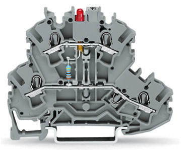 Bauelementklemme; Doppelstock; LED rot; DC 24 V; für Tragschiene 35 x 15 und 35 x 7,5; 2,5 mm²; Push-in CAGE CLAMP®; grau