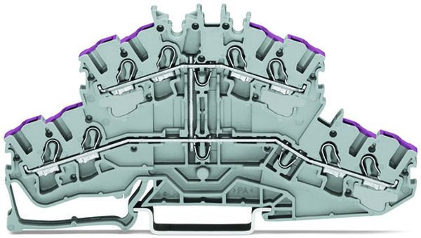 4-Leiter-Doppelstockklemme; 8-Leiter-Durchgangsklemme; L; ohne Beschriftungsträger; intern gebrückt; Leitereinführung violett bedruckt; für Tragschiene 35 x 15 und 35 x 7,5; 2,5 mm²; Push-in CAGE CLAMP®; 2,50 mm²; grau
