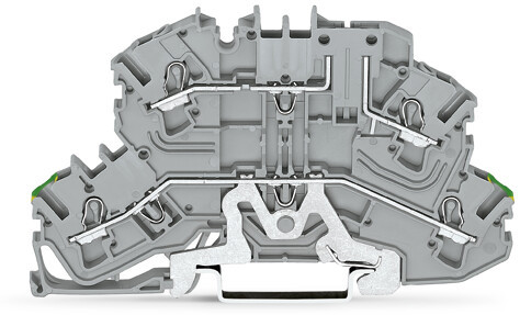 Doppelstock-Basisklemme; PE/L; Obergeschoss Basis; für Tragschiene 35 x 15 und 35 x 7,5; 2,5 mm²; Push-in CAGE CLAMP®; 2,50 mm²; grau