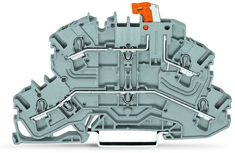 Die Doppelstockklemme (Artikelnummer 2002-2671) bietet eine saubere Elektroinstallation. Für den Leiteranschluss werden bei dieser Doppelstockklemme Abisolierlängen von 10 bis 12 mm benötigt. Die Doppelstockklemme erfüllt zudem auch die Funktion Trennklemme. Dieses Produkt basiert auf der Push-in CAGE CLAMP®-Technologie. Die Push-in CAGE CLAMP® Anschlusstechnik ist der Universalanschluss für alle Leiterarten mit dem Zusatznutzen des direkten Steckens. Starre Leiter sowie feindrähtige Leiter mit Aderendhülse können ohne Werkzeug direkt in die Klemmstelle gesteckt werden. Diese Doppelstockklemme ist in Abhängigkeit von der Leiterart für Leiterquerschnitte von 0,25 mm² bis 4 mm² geeignet. Dieses Produkt ist für bestimmte Ex-Anwendungen geeignet (siehe Produktdatenblatt).Merkmale