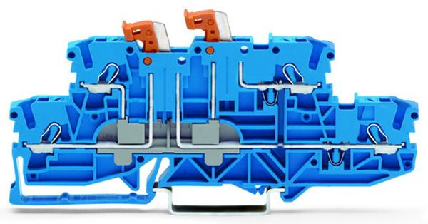Doppelstock-Doppeltrennklemme; mit 2 schwenkbaren Trennmessern; für Anwendungen Ex i geeignet; für Tragschiene 35 x 15 und 35 x 7,5; 2,5 mm²; Push-in CAGE CLAMP®; 2,50 mm²; blau