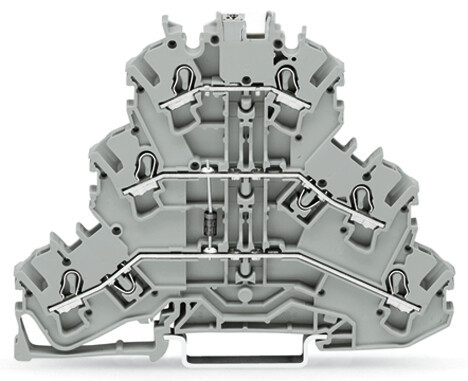 Bauelementklemme; Dreistock; mit Diode 1N4007; Anode unten; für Tragschiene 35 x 15 und 35 x 7,5; 2,5 mm²; Push-in CAGE CLAMP®; grau