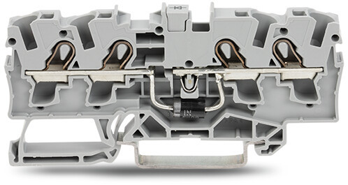 Bauelementklemme; 4 Leiter; mit Diode 1N5408; Anode rechts; für Tragschiene 35 x 15 und 35 x 7,5; 4 mm²; Push-in CAGE CLAMP®; grau