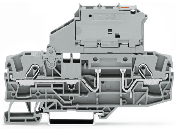 | Kurzbeschreibung | 2-Leiter-Sicherungsklemme,mit schwenkbarem Sicherungshalter,für G-Sicherungseinsatz 5 x 20 mm,grau |