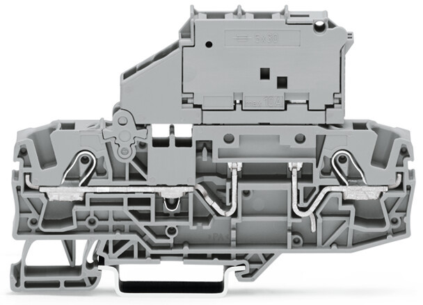 | Kurzbeschreibung | 2-Leiter-Sicherungsklemme,mit schwenkbarem Sicherungshalter,für G-Sicherungseinsatz 5 x 30 mm,grau |