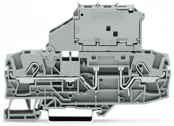 | Kurzbeschreibung | 2-Leiter-Sicherungsklemme,mit schwenkbarem Sicherungshalter,für G-Sicherungseinsatz ¼" x 1¼",grau |