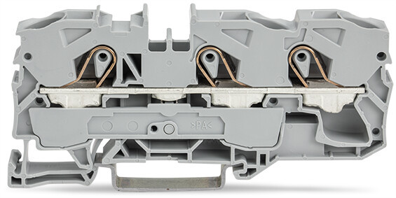 800 V / 8 kV / 3, 0,5-10 mm2 (16 mm2 e+f) 3-Leiter-Durchgangsklemme; 10 mm²; für Anwendungen Ex e II geeignet; seitliche und mittige Beschriftung; für Tragschiene 35 x 15 und 35 x 7,5; Push-in CAGE CLAMP®; 10,00 mm²; grau