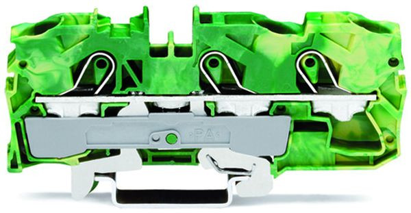 0,5 - 10 mm2 (16 mm2 e+f) 3-Leiter-Schutzleiterklemme; 10 mm²; für Anwendungen Ex e II geeignet; seitliche und mittige Beschriftung; für Tragschiene 35 x 15 und 35 x 7,5; Push-in CAGE CLAMP®; 10,00 mm²; grün-gelb