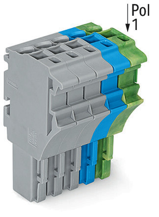 1-Leiter-Federleiste; Push-in CAGE CLAMP®; 4 mm²; Rastermaß 5,2 mm; 5-polig; 4,00 mm²; grau/blau/grün-gelb