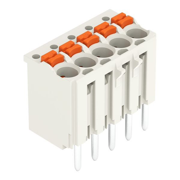 1-Leiter-THT-Federleiste, gerade; Drücker; Push-in CAGE CLAMP®; 1,5 mm²; Rastermaß 3,5 mm; 5-polig; Lötstift Ø 1,0 mm; 1,50 mm²; lichtgrau
