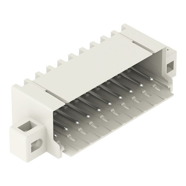 THR-Stiftleiste; Lötstift Ø 1,0 mm; abgewinkelt; Befestigungflansch; Rastermaß 3,5 mm; 10-polig; lichtgrau