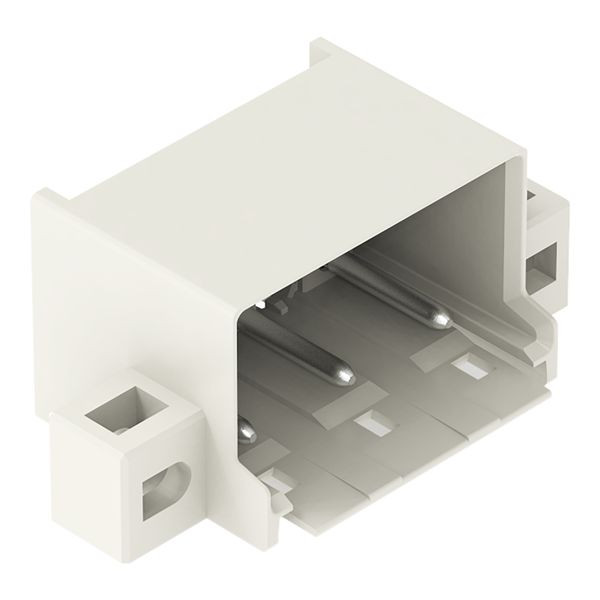 THT-Stiftleiste; Lötstift Ø 1,4 mm; abgewinkelt; Befestigungflansch; Rastermaß 7,5 mm; 3-polig; lichtgrau