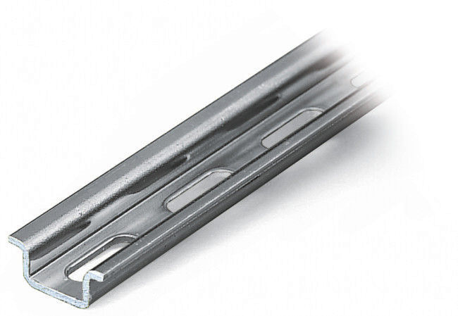 Stahltragschiene; 15 x 5,5 mm; 1 mm dick; 2 m lang; gelocht; entsprechend EN 60715; silberfarben