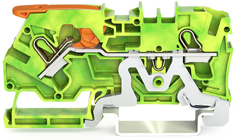 2-Leiter-Schutzleiterklemme; mit Hebel und Push-in CAGE CLAMP®; 4 mm²; mit Prüföffnung; seitliche und mittige Beschriftung; für Tragschiene 35 x 15 und 35 x 7,5; Push-in CAGE CLAMP®; 4,00 mm²; grün-gelb