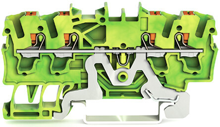 4-Leiter-Schutzleiterklemme; mit Drücker; 2,5 mm²; mit Prüföffnung; seitliche und mittige Beschriftung; für Tragschiene 35 x 15 und 35 x 7,5; Push-in CAGE CLAMP®; 2,50 mm²; grün-gelb