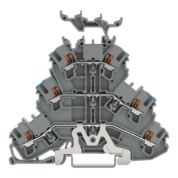 Dreistockklemme; Schirmleiter-/Durchgangs-/Durchgangsklemme; 2,5 mm²; Schirmung/N/L; mit Beschriftungsträger; für Tragschiene 35 x 15 und 35 x 7,5; Push-in CAGE CLAMP®; 2,50 mm²; grau