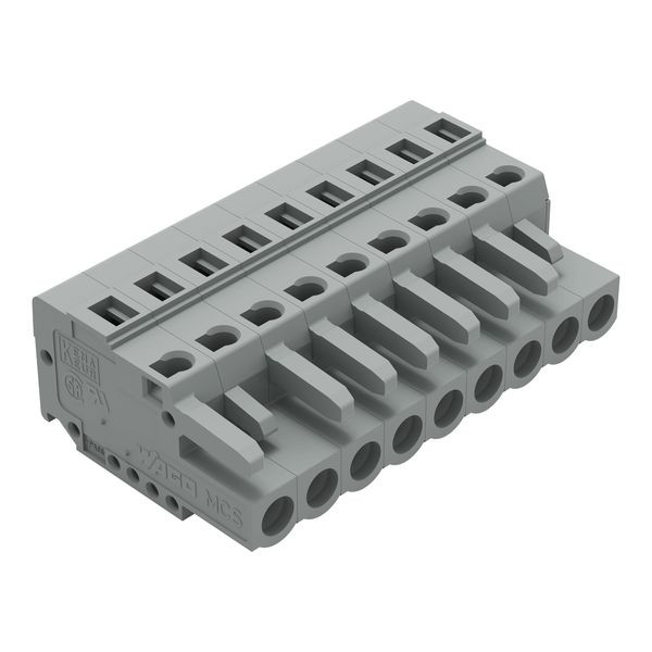 1-Leiter-Federleiste; CAGE CLAMP®; 2,5 mm²; Rastermaß 5 mm; 9-polig; mit integrierter Abschlussplatte; grau