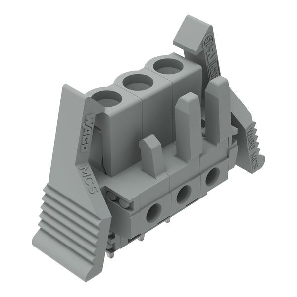 THT-Federleiste; gerade; Rastermaß 5 mm; 3-polig; Verriegelungsklinke; Lötstift 0,6 x 1,0 mm; grau