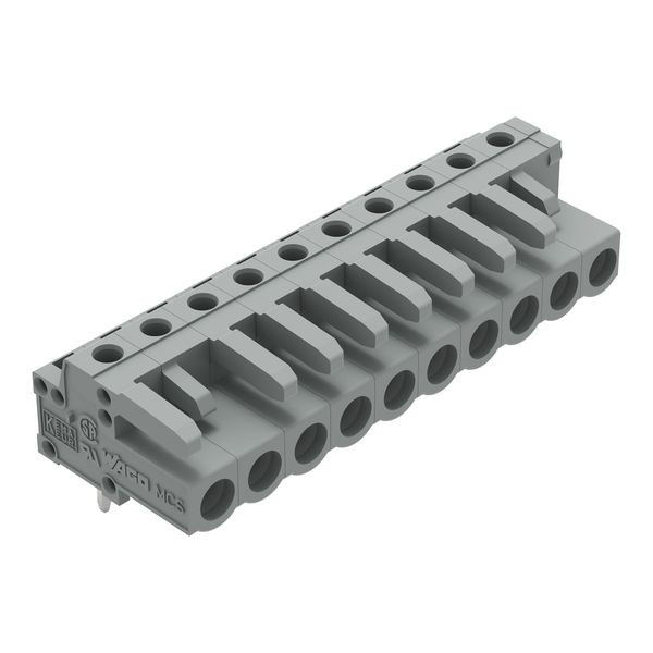 THT-Federleiste; abgewinkelt; Rastermaß 5 mm; 10-polig; Lötstift 0,6 x 1,0 mm; grau