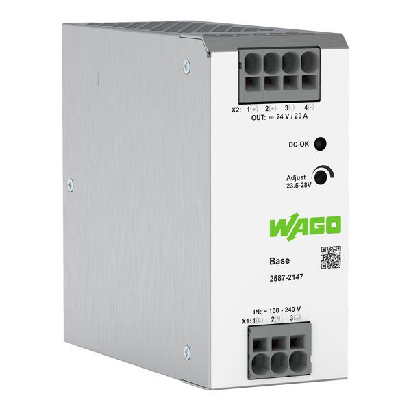 Primär getaktete Stromversorgung; Base; 1-phasig; Ausgangsspannung DC 24 V; Ausgangsstrom 20 A; DC-OK LED