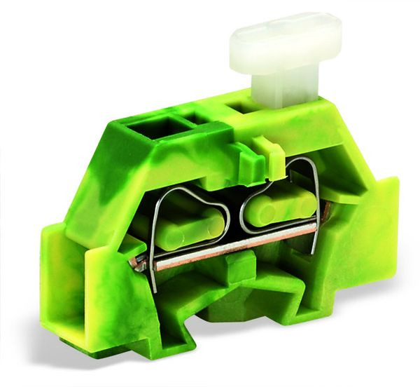 2-Leiter-Klemme; einseitig mit Drücker; mit Befestigungsflansch; 1-polig; für Schraub- u.ä. Befestigungsarten; Befestigungsloch Ø 3,2 mm; 2,5 mm²; CAGE CLAMP®; 2,50 mm²; grün-gelb