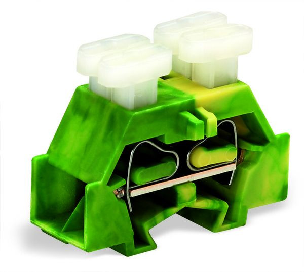 4-Leiter-Klemme; beidseitig mit Drückern; mit Befestigungsflansch; 1-polig; für Schraub- u.ä. Befestigungsarten; Befestigungsloch Ø 3,2 mm; 2,5 mm²; CAGE CLAMP®; 2,50 mm²; grün-gelb