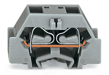4-Leiter-Klemme; ohne Drücker; mit Rastfuß; 1-polig; für Blechdicke 0,6 - 1,2 mm; Befestigungsloch Ø 3,5 mm; 2,5 mm²; CAGE CLAMP®; 2,50 mm²; grau