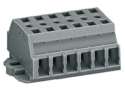 2-Leiter-Klemmenleiste; ohne Drücker; mit Befestigungsflanschen; 6-polig; für Schraub- u.ä. Befestigungsarten; Befestigungsloch Ø 3,2 mm; 2,5 mm²; CAGE CLAMP®; grau