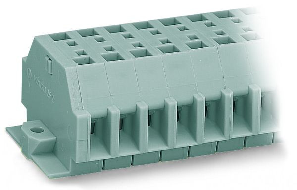 2-Leiter-Klemmenleiste; ohne Drücker; mit Rastfüßen; 2-polig; für Blechdicke 0,6 - 1,2 mm; Befestigungsloch Ø 3,5 mm; 4 mm²; CAGE CLAMP®; 4,00 mm²; grau