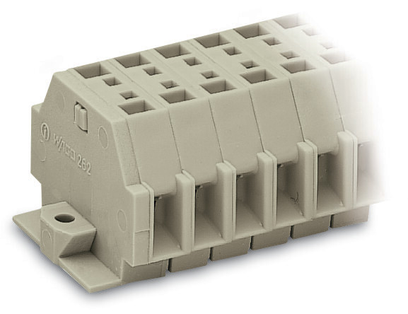 2-Leiter-Klemmenleiste; ohne Drücker; für Anwendungen Ex e II geeignet; mit Rastfüßen; 2-polig; für Blechdicke 0,6 - 1,2 mm; Befestigungsloch Ø 3,5 mm; 4 mm²; CAGE CLAMP®; 4,00 mm²; lichtgrau