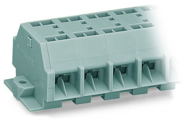 4-Leiter-Klemmenleiste; ohne Drücker; mit Rastfüßen; 12-polig; für Blechdicke 0,6 - 1,2 mm; Befestigungsloch Ø 3,5 mm; 4 mm²; CAGE CLAMP®; 4,00 mm²; grau