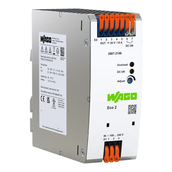 Stromversorgung; Eco 2; 1-phasig; Ausgangsspannung DC 24 V; Ausgangsstrom 10 A; DC-OK-Kontakt