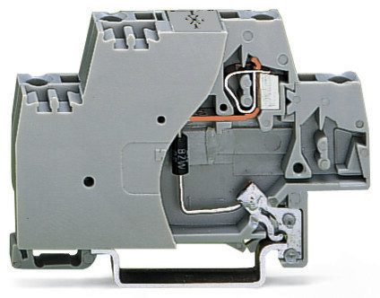 | Kurzbeschreibung | Bauelementklemme,Doppelstock,mit Abschlussplatte und direkter Ableitung auf Tragschiene,grau |