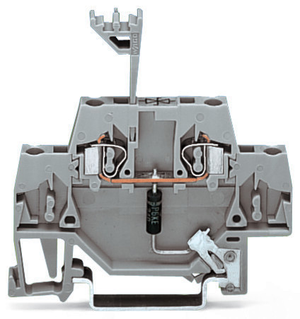 Bauelementklemme; Doppelstock; mit direkter Ableitung auf die Tragschiene; mit Transildiode P6KE68C; DC 48 V; für Tragschiene 35 x 15 und 35 x 7,5; 2,5 mm²; CAGE CLAMP®; grau
