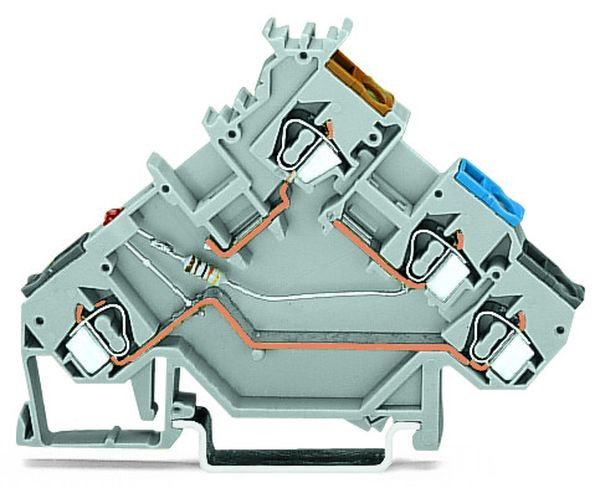 3-Leiter-Initiatorenklemme; LED rot; für PNP-(plus-)schaltende Initiatoren; mit farbig bedruckten Leitereinführungen; 2,5 mm²; CAGE CLAMP®; 2,50 mm²; grau